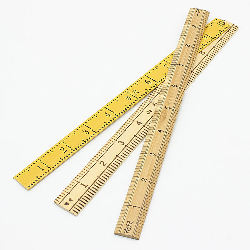 A double-sided market ruler, a single-sided market ruler, a yellow plastic market ruler, a yellow plastic market ruler, a yellow plastic market ruler, a yellow plastic market ruler
