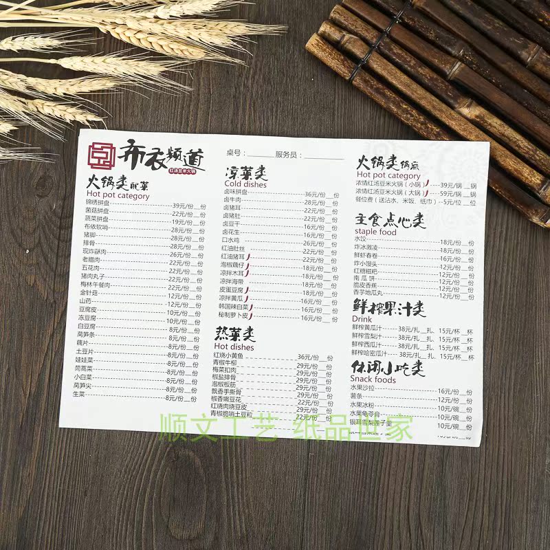 Hotpot storeFruit kraft paper menu custom design Hotel seafood free custom price list Creative recipe