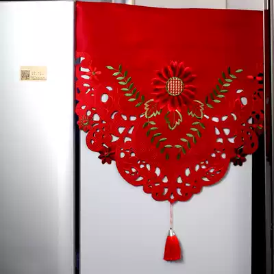 Refrigerator cover cloth dust cloth single door double door freezer cloth art towel dust cover festive red embroidery Hollow