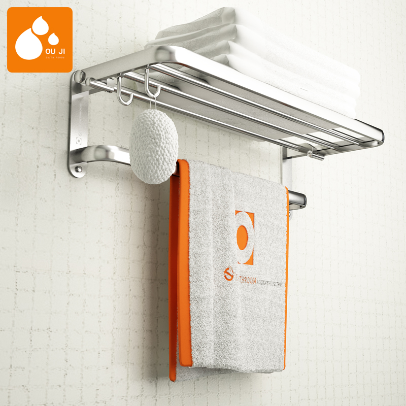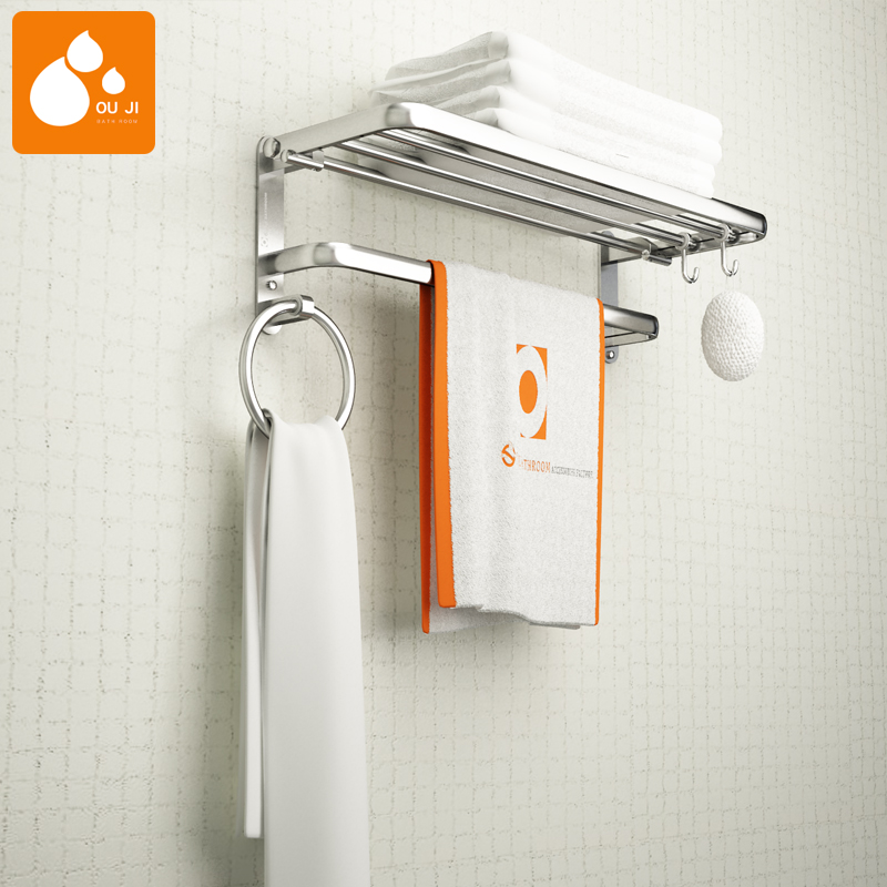 Oji Free Punching Hair Towel Rack Space Aluminum Makeup Room Shelf Bath Towel Rack Bathroom Hardware Bathroom Pendant