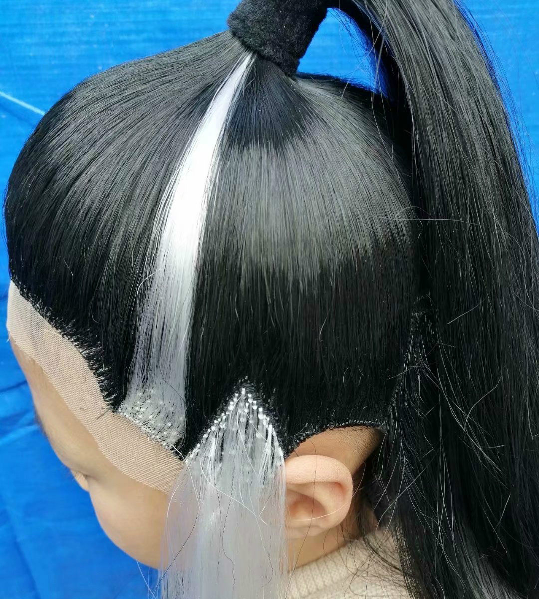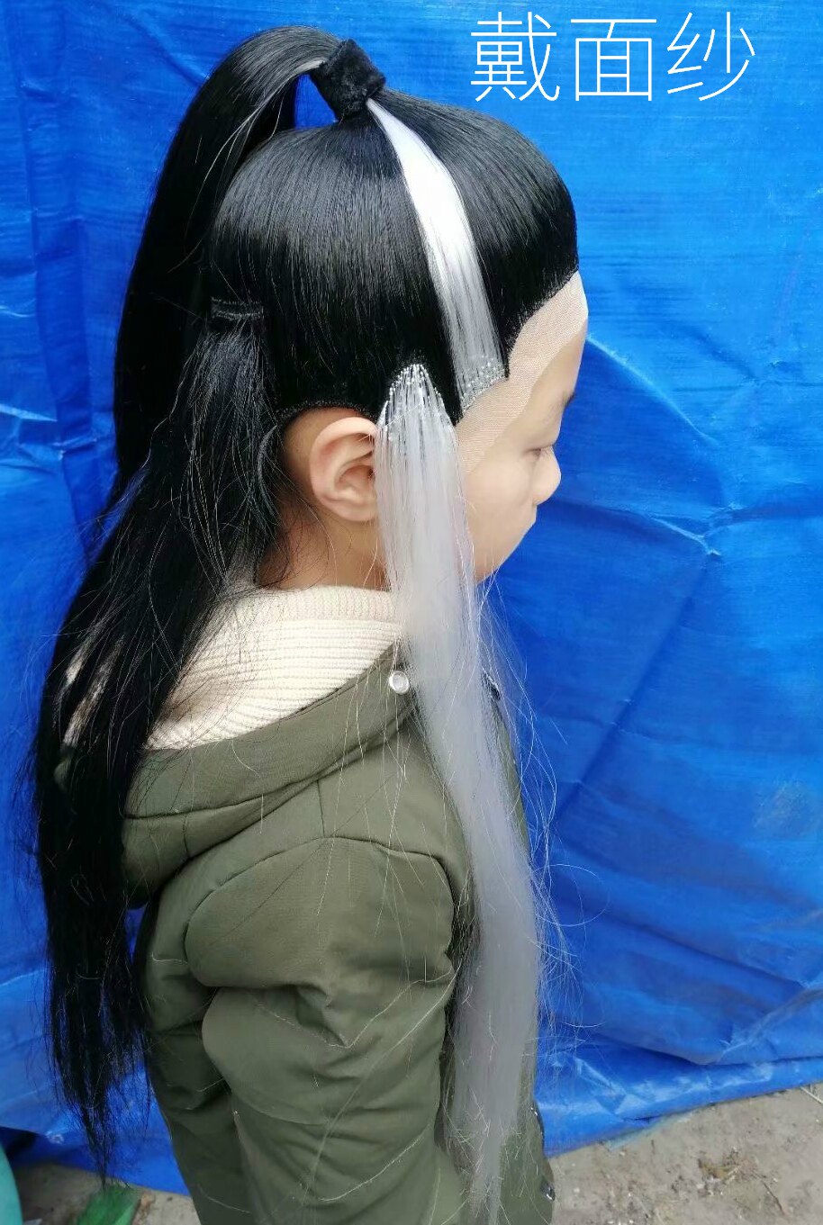 Black hair Young over wearing yarn black Show Shoe with white black Yang wide wig black wearing veil