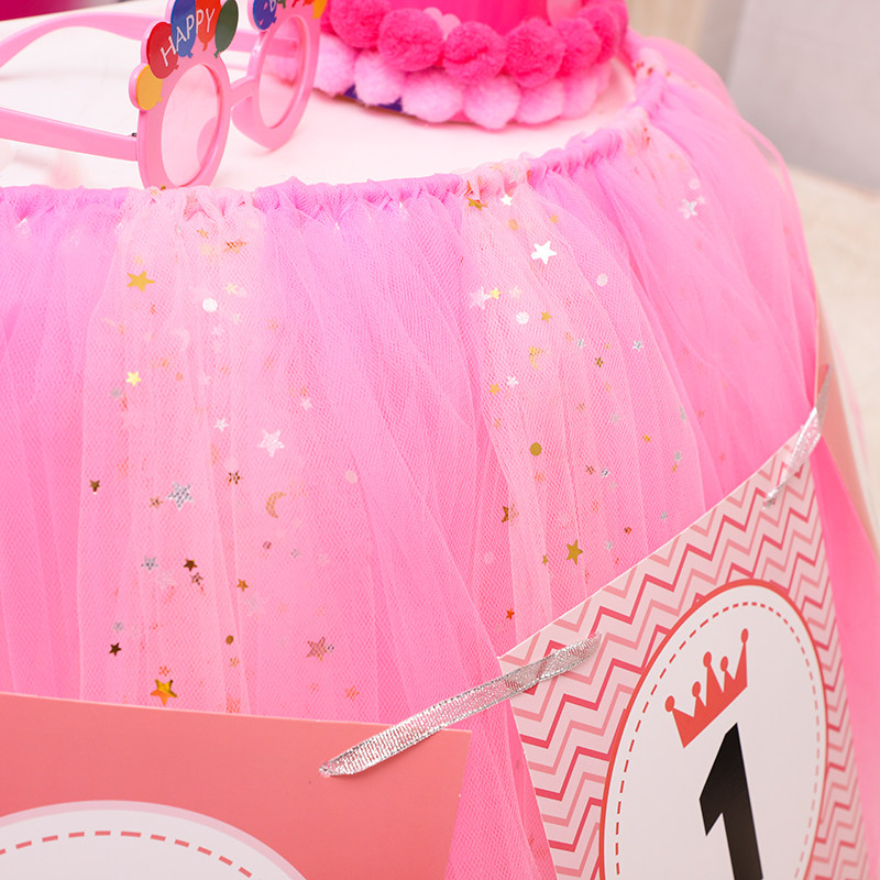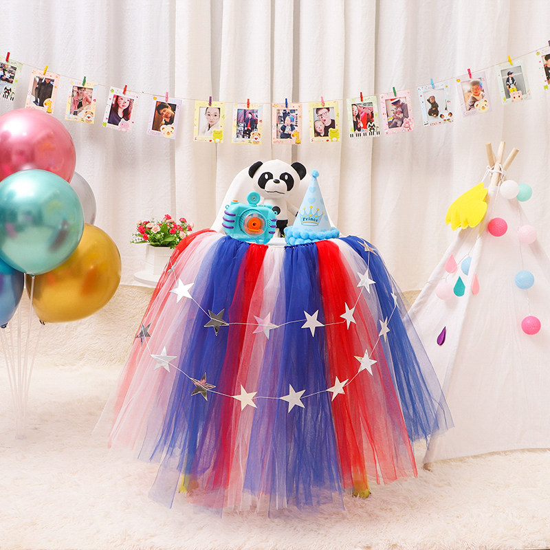 tutu yarn table skirt Baby birthday decoration Party decoration supplies Yarn curtain tablecloth Dessert table scene decoration
