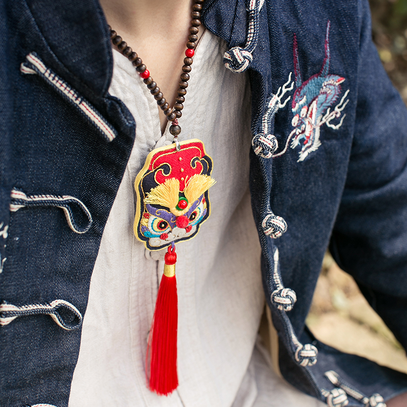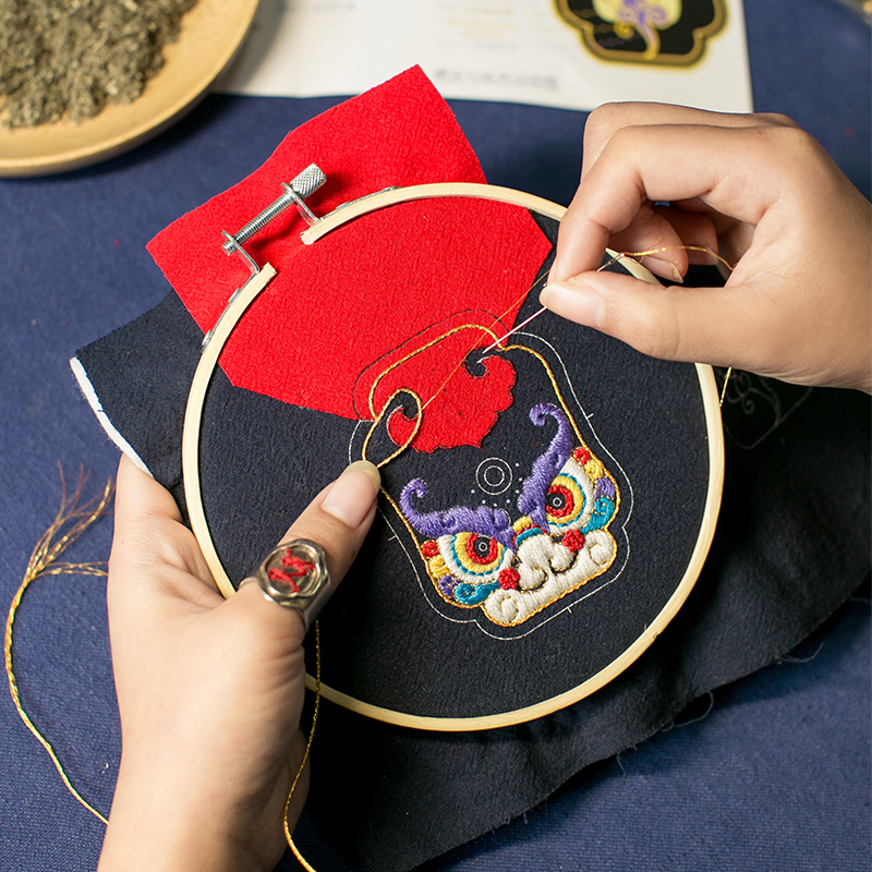 Wang's hand-created handmade diy lion embroidery material package Peace charm self-embroidery to send boyfriend purse fabric beginner
