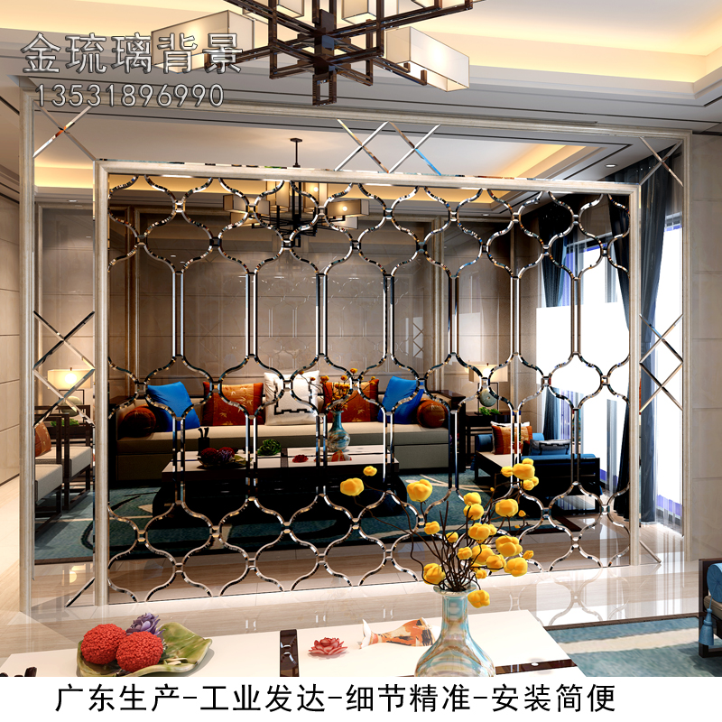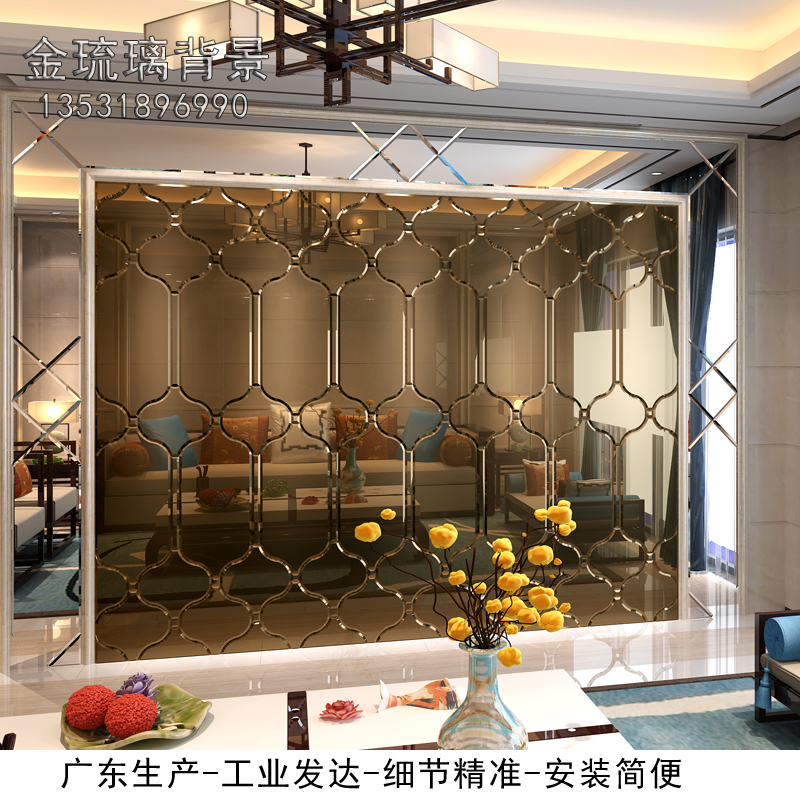Eurostyle Art Glass Parquet Guest Dining Room Diamond Gold Tea Grey Black Mirror Video Hall Car Side Sofa TV Background Wall