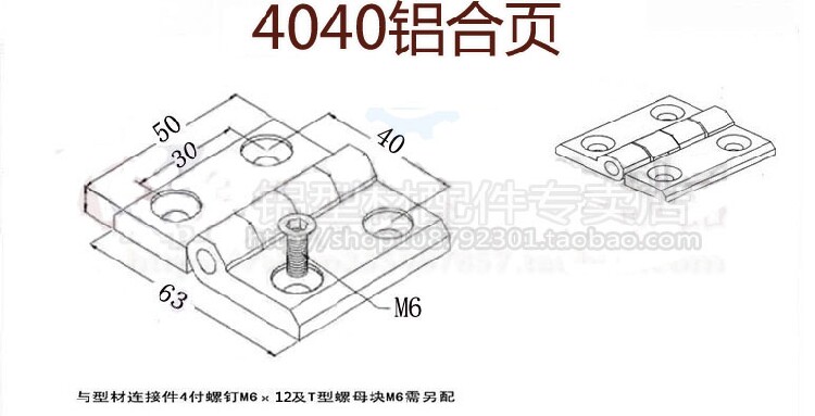 Aluminum alloy hinges 4040 hinges Industrial aluminium extrusion materials doors and windows aluminium alloy manufacturer direct metal hinges 63 * 50