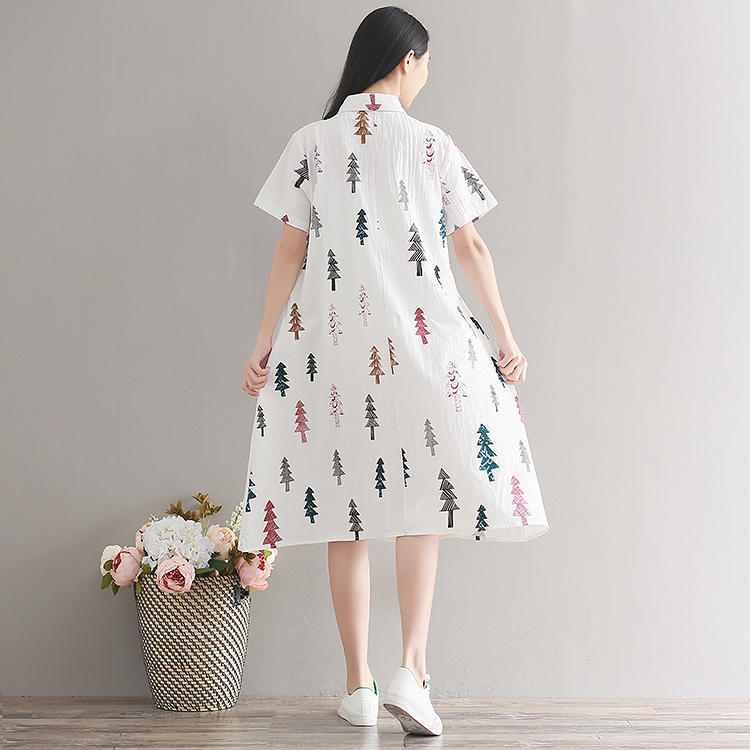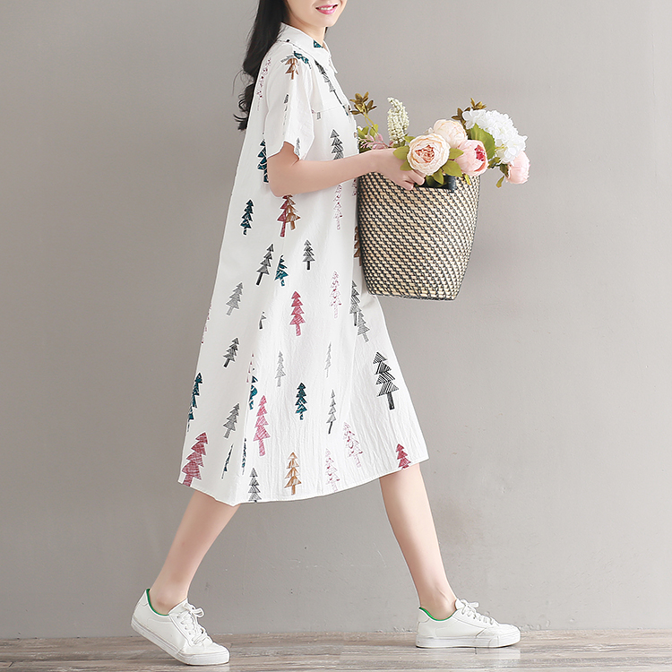 Korean version loose large size mid-length pregnant women's dress women's summer cotton and linen short-sleeved maternity summer shirt skirt