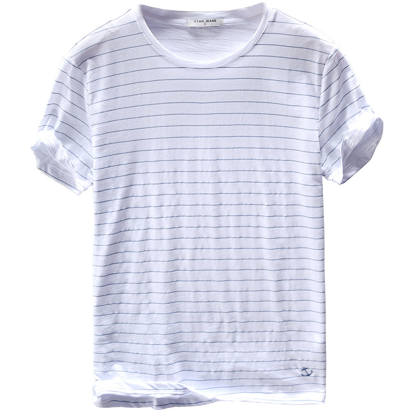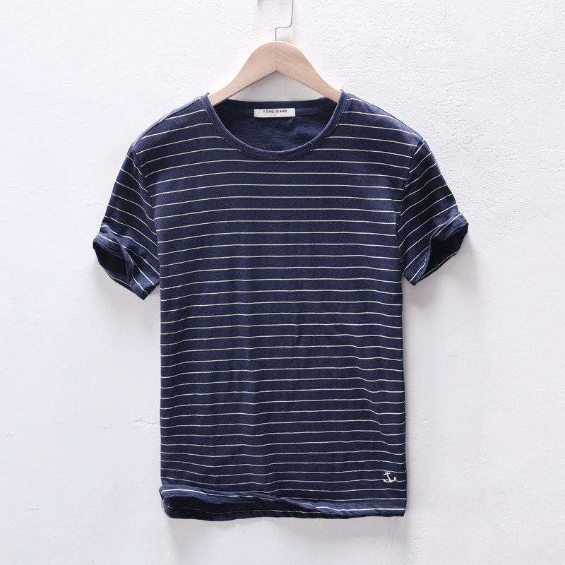 Extremely Hemp collar short sleeves Bamboo Festival Cotton T-shirt Men Casual Streaks Youth Art Loose Half Sleeve Pure Cotton T-shirt