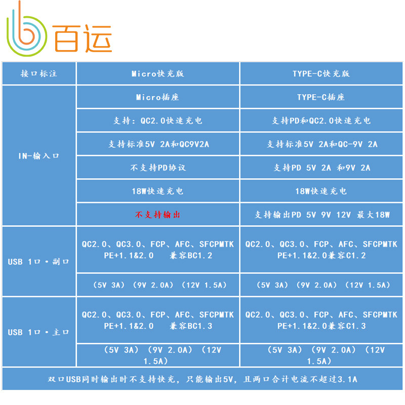 Micro input fast charge version (without battery) TYPE-C bidirectional PD version (without battery) Micro version (7500mAh Foster battery) TYPE-C version