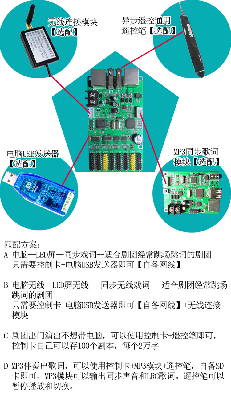 QL-VIP2 control card without remote control pen alone remote control pen wireless module character screen machine control card computer wireless transmitting end MP3 on demand module USB wired transmitter