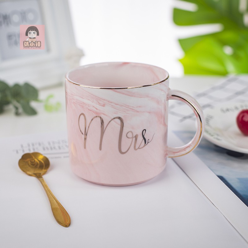 Large capacity mug ceramic mug creative marbled couples cup romantic birthday gift spoon