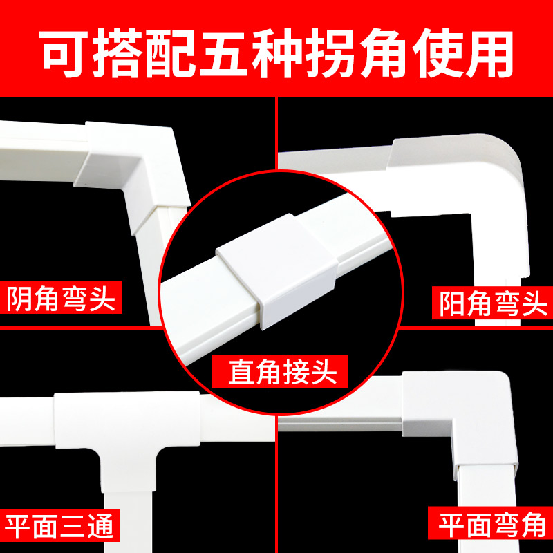 PVC Trunking Accessories Flat Bending Corner Tee Clingangle Elbow Anticollising Protection Strip Elbow Corner Choke Plug Wall Corner Swerve