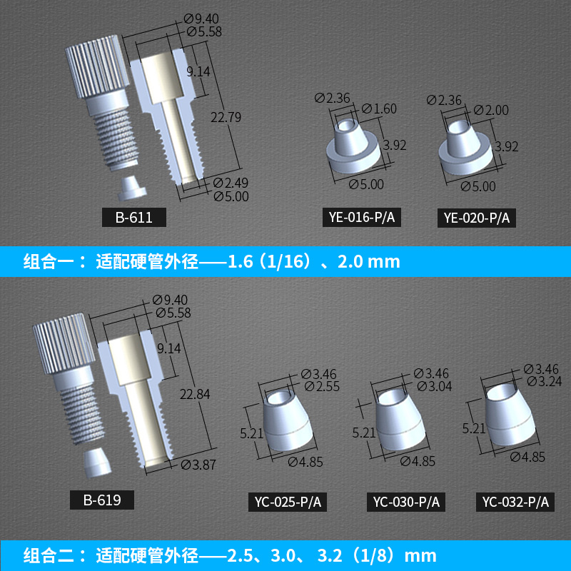 Pressure plug 1 4-28 thread pressure ring 1 6-PFA material pressure plug 1 4-28 thread pressure ring 2 0-PFA material pressure plug 1 4-28 thread pressure ring 2