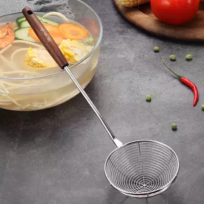 Stainless steel colander wooden handle large filter screen household fried hot pot colander fence mixed noodle spoon spoon scoop kitchen