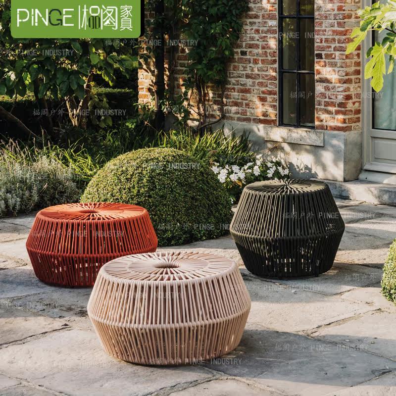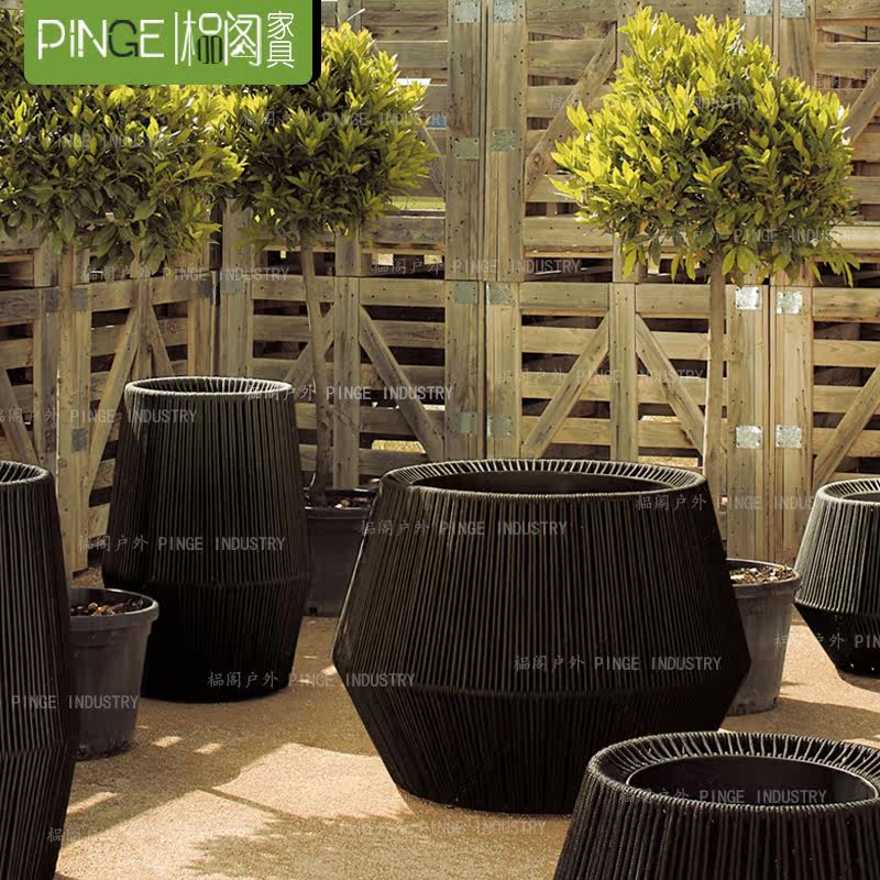 Outdoor rattan flower box creative imitation rattan flower pot small round coffee table balcony courtyard rattan art hotel gardening flower trough flower table