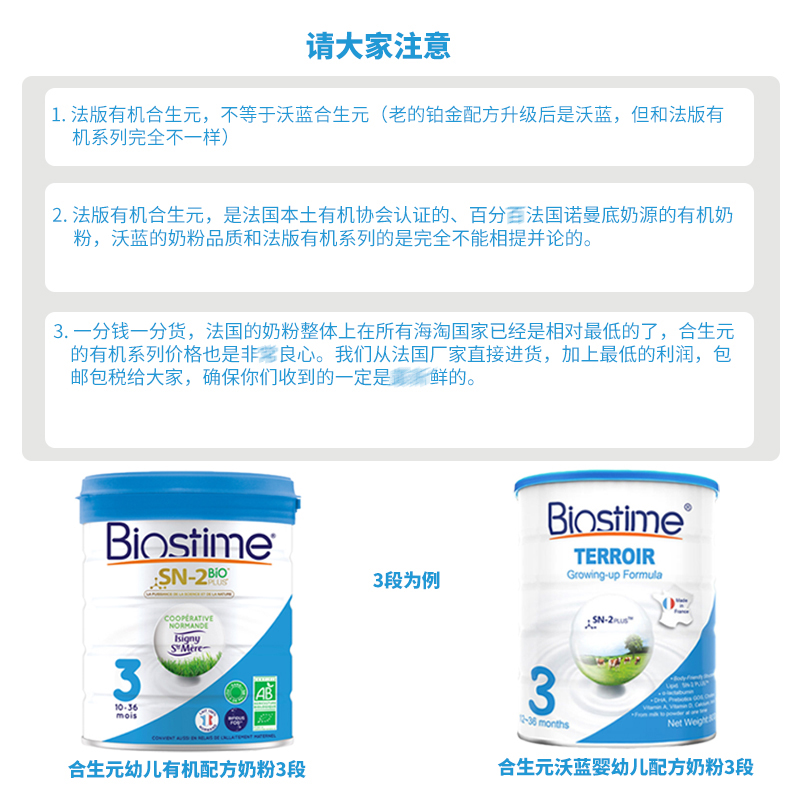 France Biostime Hopson Yuan 2-stage baby infant organic milk powder does not fire overseas direct mail tax