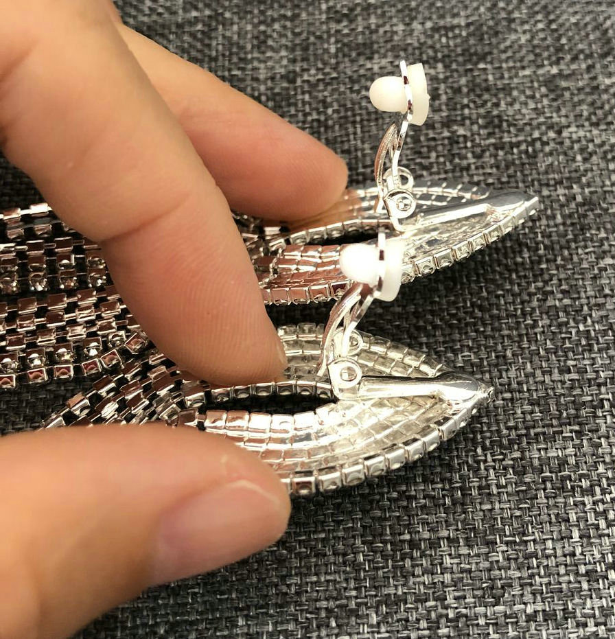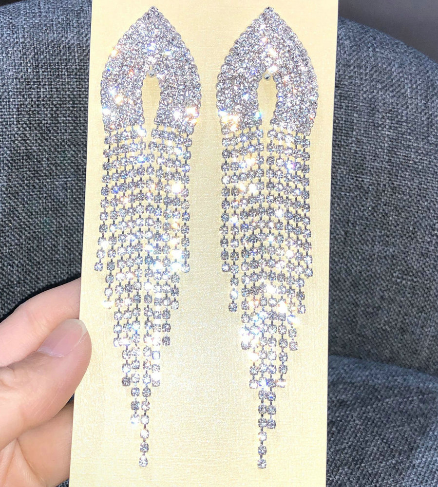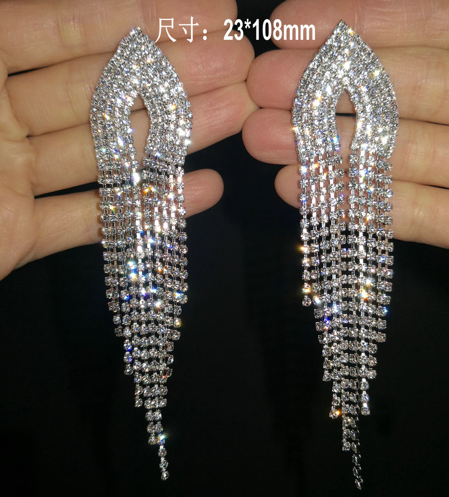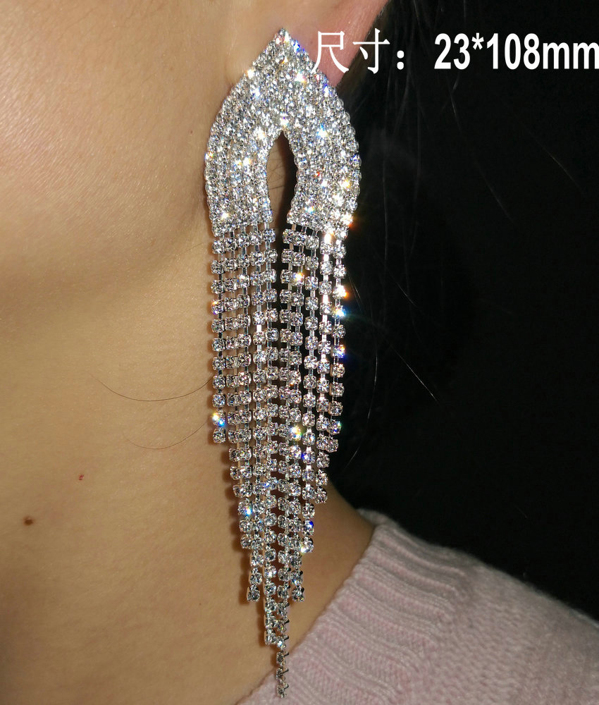 Bodybuilding stage tassel earrings banquet luxury dress Joker personality Europe and the United States exaggerated flash diamond nightclub earrings ear clip