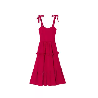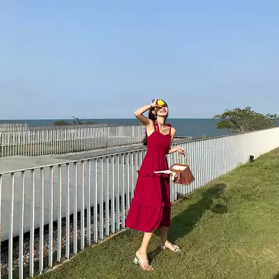 2021 new French bellflower red dress feminine temperament strapless suspender skirt summer thin skirt