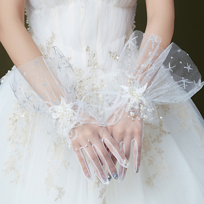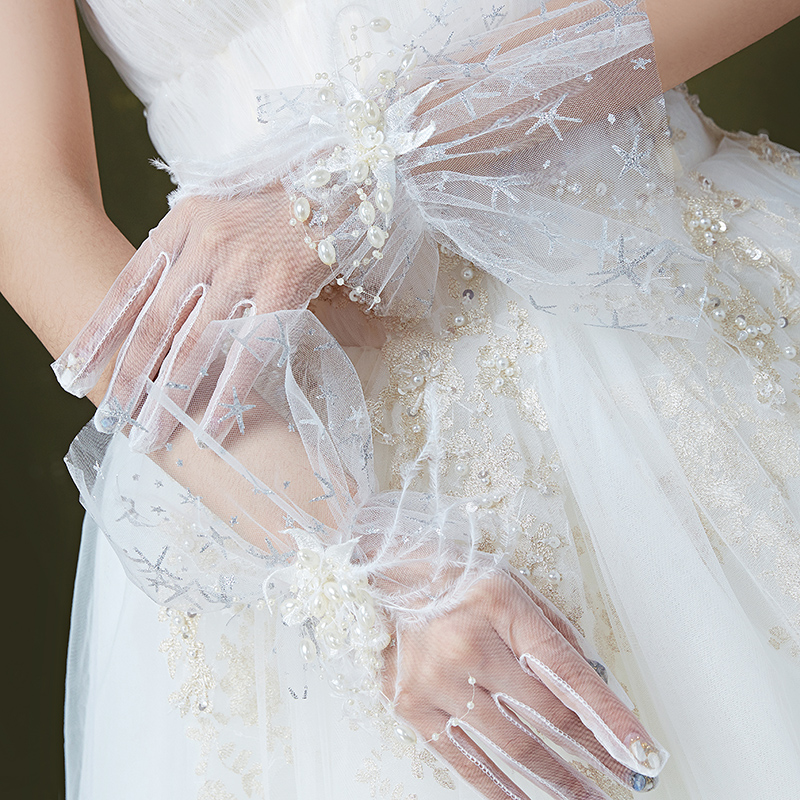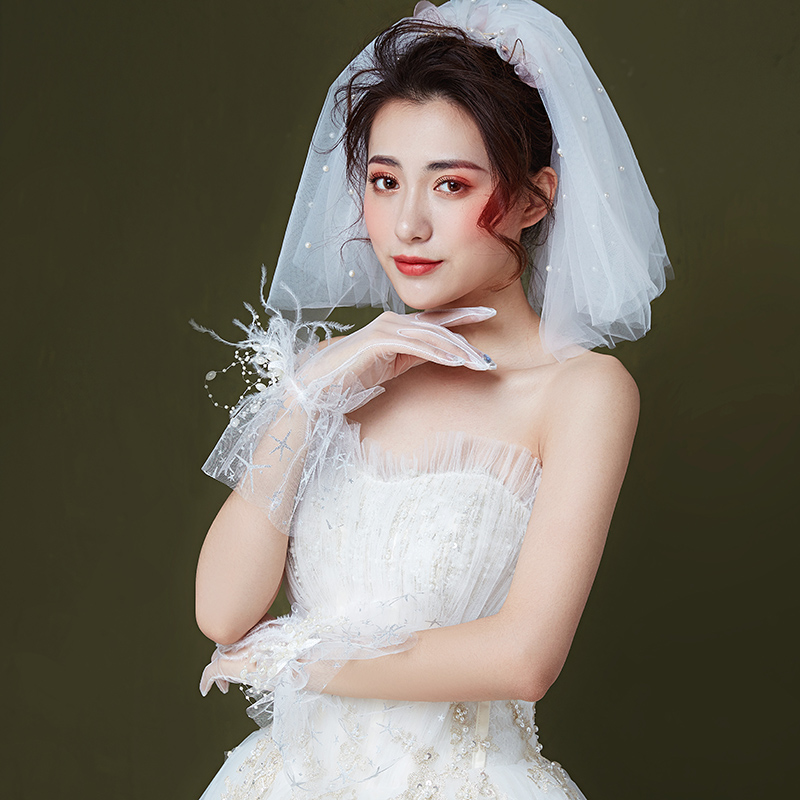 Handmade Super Fairy Bride Wedding Wedding Dress Gloves Han Style Short lace mesh yarn Veil Thin all white Flowers Gloves