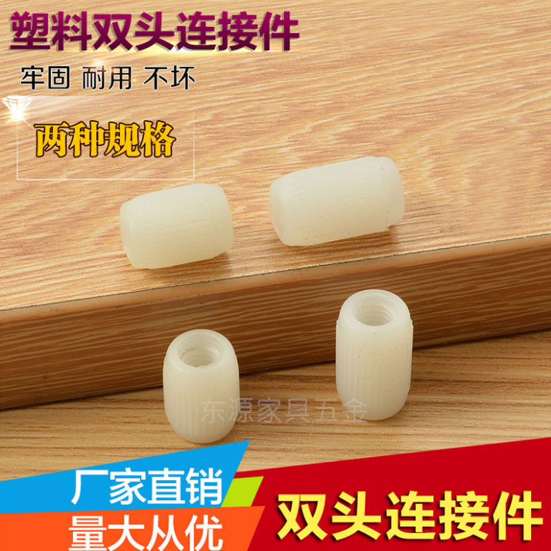 Panel furniture cabinet hardware three-in-one double-head embedded parts plastic nut straight-through connection embedded parts rubber particles