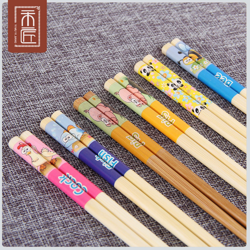 Children's chopsticks home training chopsticks learning chopsticks children's baby tableware set family solid bamboo short fast son 1 pair
