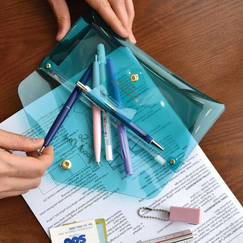 Plepic Korean stationery minimalist transparent pen bag woman portable waterproof light fluorescent pen case small freshener pen brush package