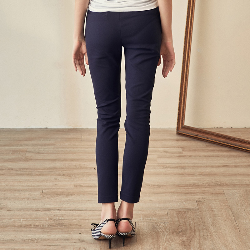 Luo Yi temperament pure color small feet trousers women's new commuting intellectual occupation dark blue slim nine-point pants 7269