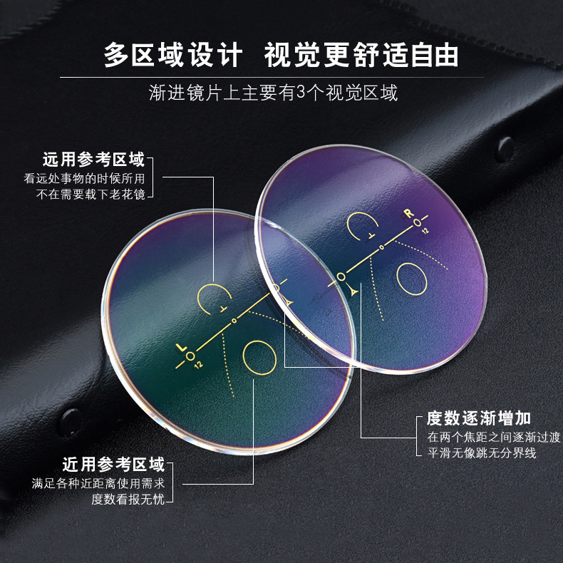 Luying AN inner progressive multifocal far and near dual-use anti-fatigue can prevent blue light variable color aspheric resin lens