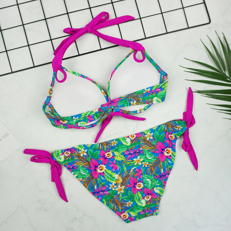 Printed charming strap thickened steel to gather sexy two-style triangular three-point bikini bikini female swimsuit