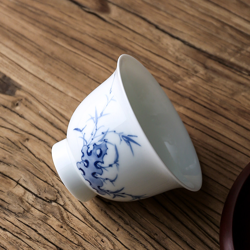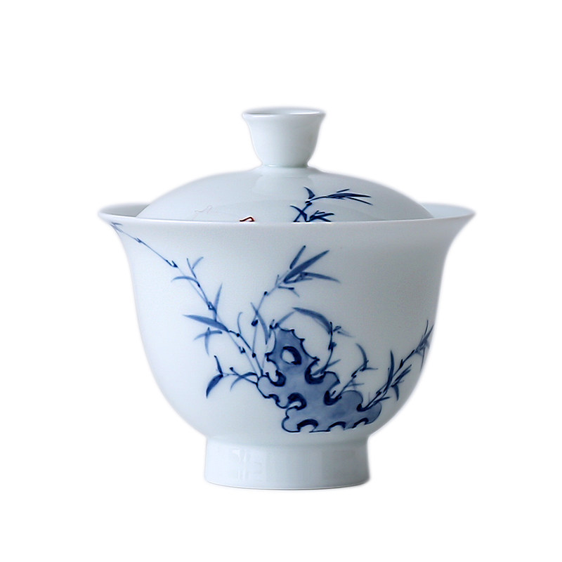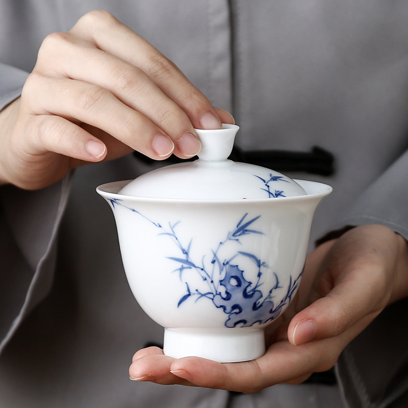 Underglaze hand-painted cover bowl tea cup tea large three-level cup kung fu tea set ceramic underglaze color blue and white porcelain cover bowl