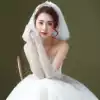 Crystal yarn Bridal wedding gloves Medium and long version of mesh thin plain yarn naked yarn Wedding photo studio modeling travel gloves