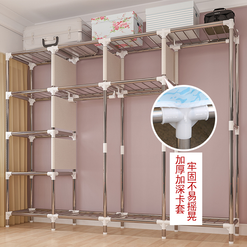 Wardrobe simple cloth wardrobe steel pipe bold reinforcement double large fabric assembly wardrobe full steel frame storage cabinet