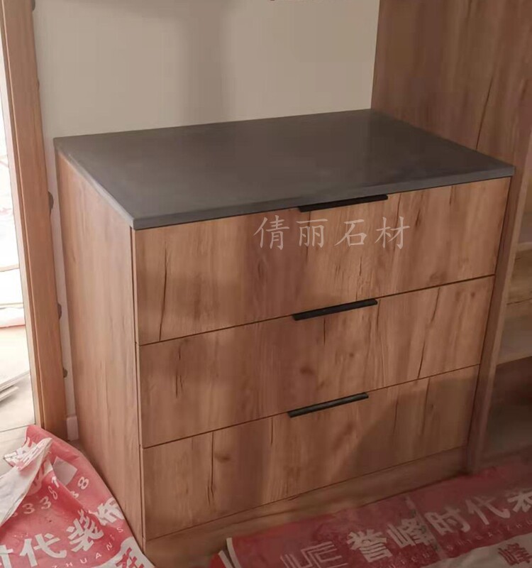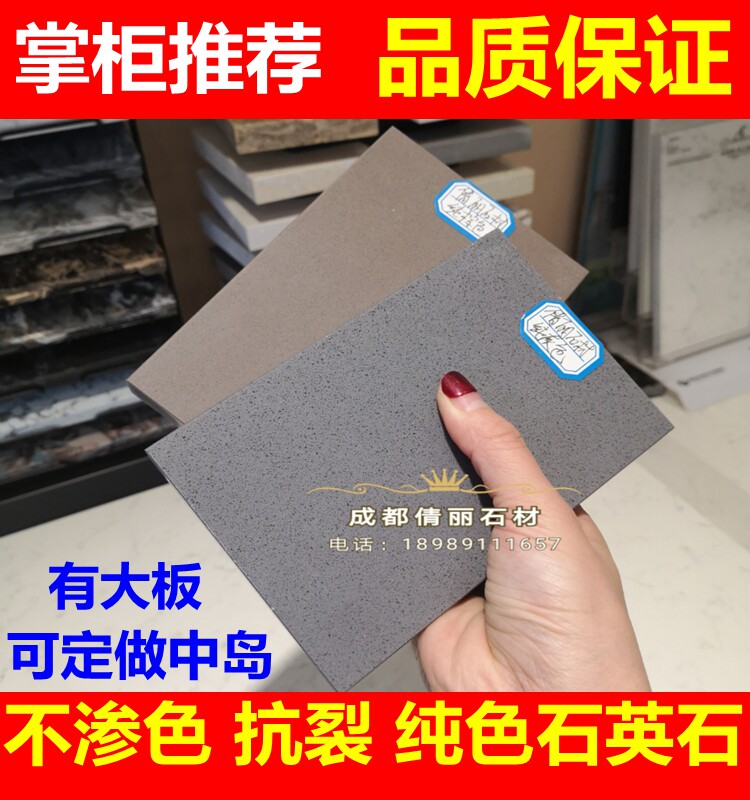 Custom Kitchen Overall Cupboard Quartz Stone Countertop Pure Color Oven Table Surface Pure Grey Quartz Stone Middle Island Table Face 2 Cm Thick