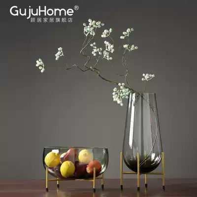 Light luxury glass vase fruit plate decoration Modern home living room model room soft decoration creative decoration