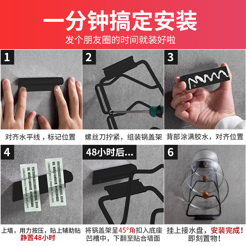 Pot cover rack Wall-mounted kitchen supplies shelf Punch-free storage shelf Shelf for pot cover Cutting board Cutting board rack