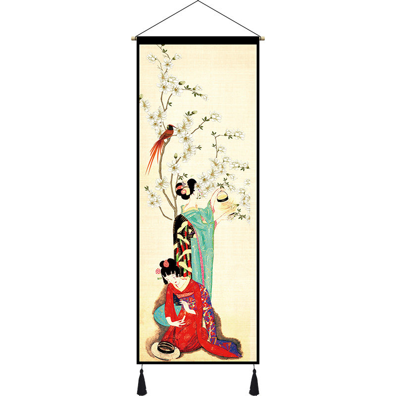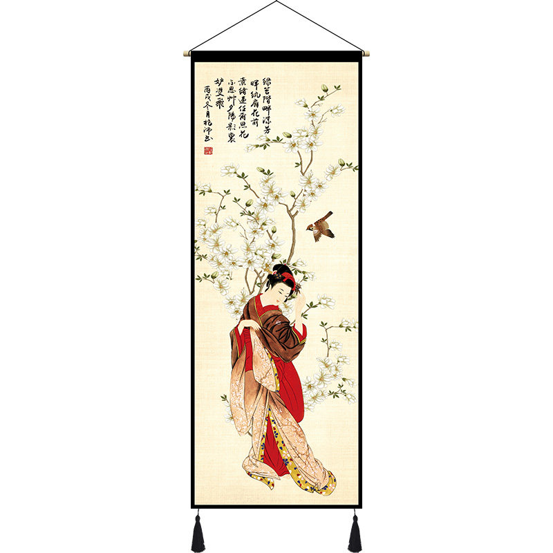 Bed and breakfast decoration hanging canvas Art lady painting hanging cloth Japanese living room bedroom bed head wall cloth Corridor channel hanging painting