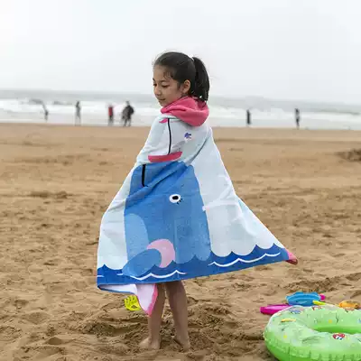 Children's seaside pure cotton bathrobe Beach swimming towel Female travel absorbent cotton cap Bath towel cloak cloak Male