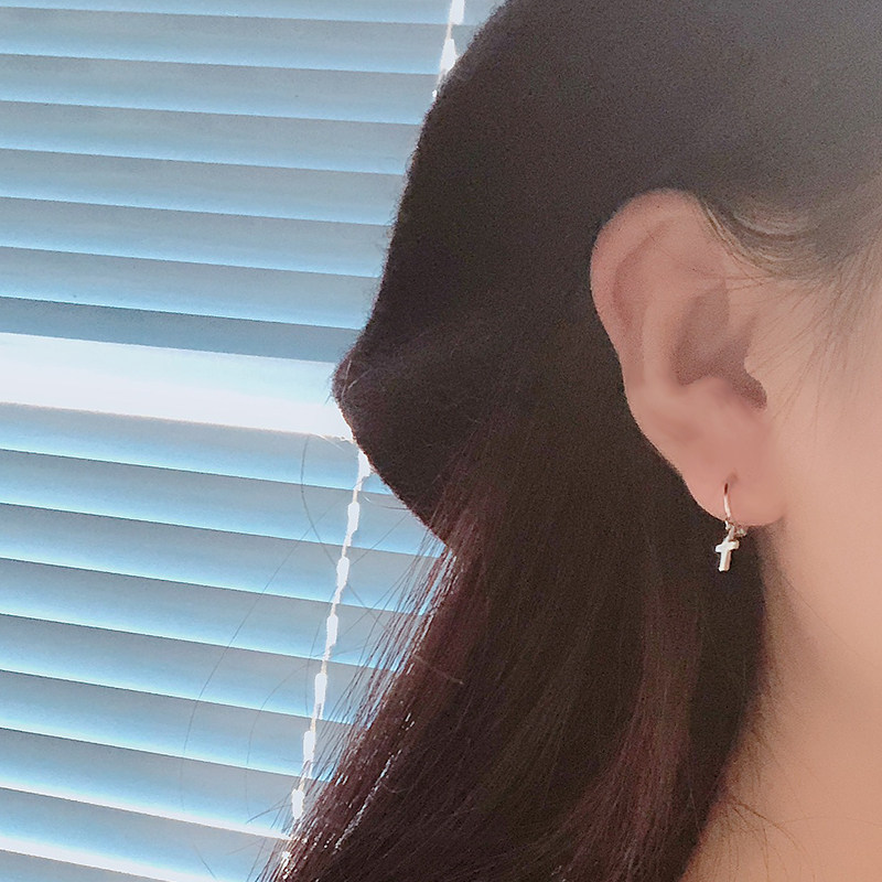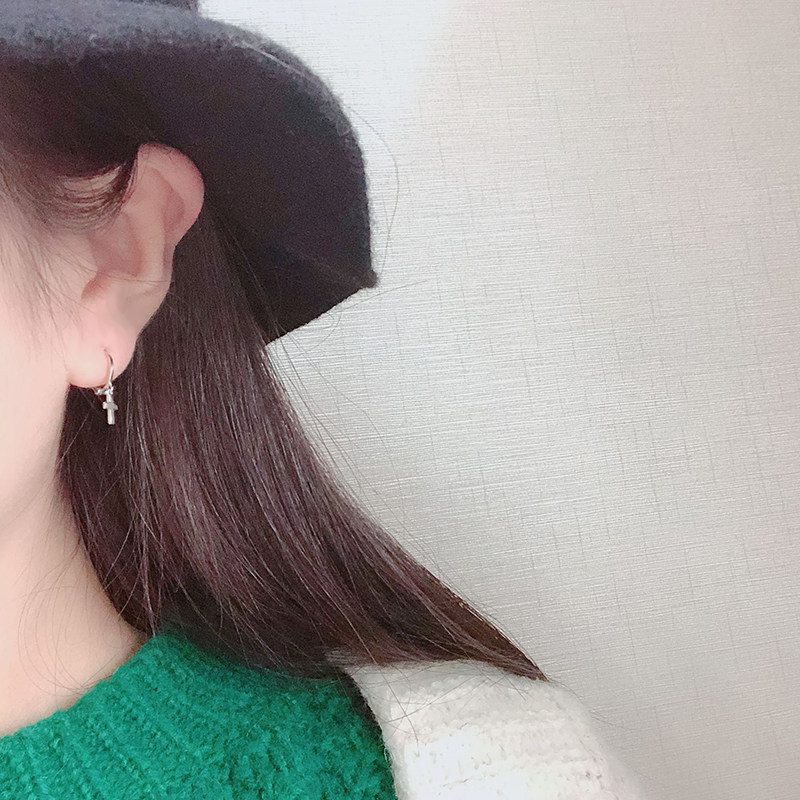 s925 Silver Cross Earbutton Women Japanese Korean Wind simple geometric ear - needle accessories