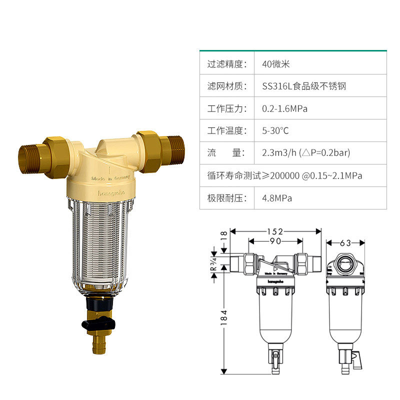 Hansgrohe household tap water backflush pre-filter filter inward filter