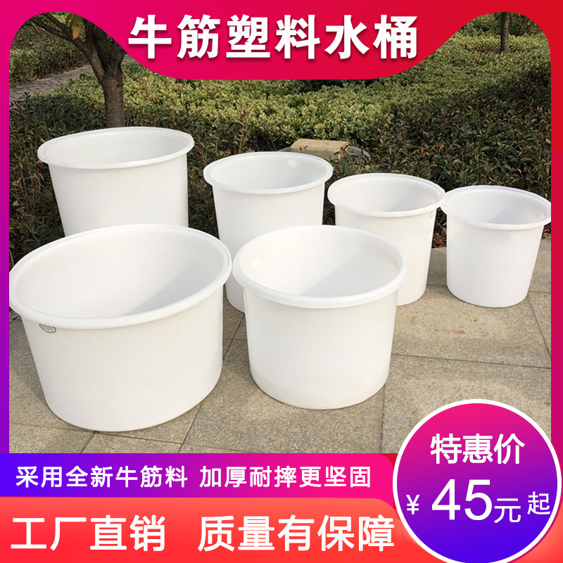 Beef tendon plastic bucket thickened household large food grade plastic bucket Bath bucket Outdoor water storage bucket with lid round bucket