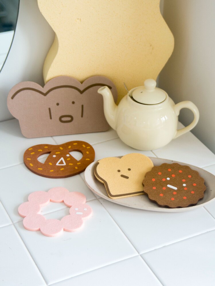 MSS Meow Warlock cute emoji colorful stone felt coaster table insulation mat Nordic cartoon decoration ins