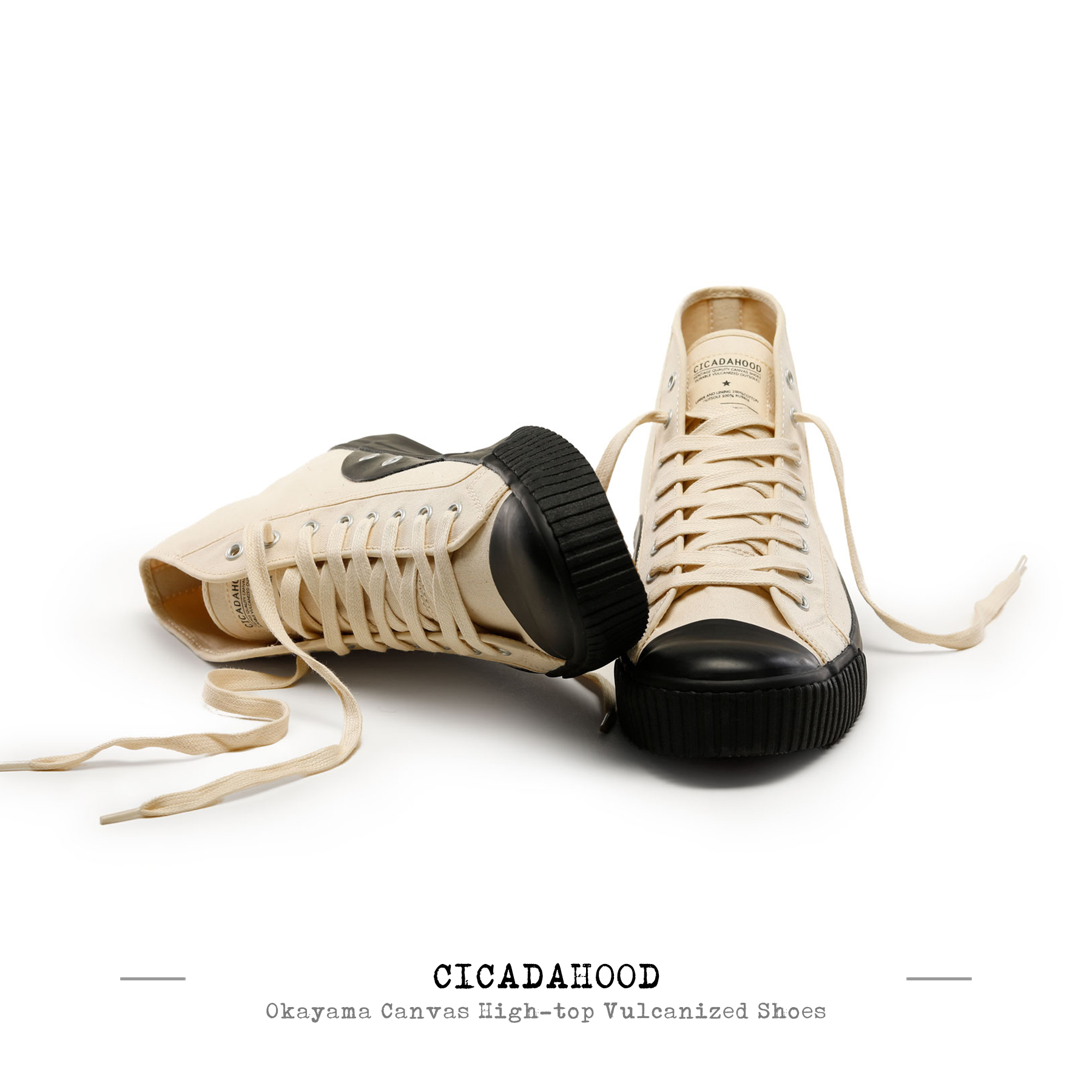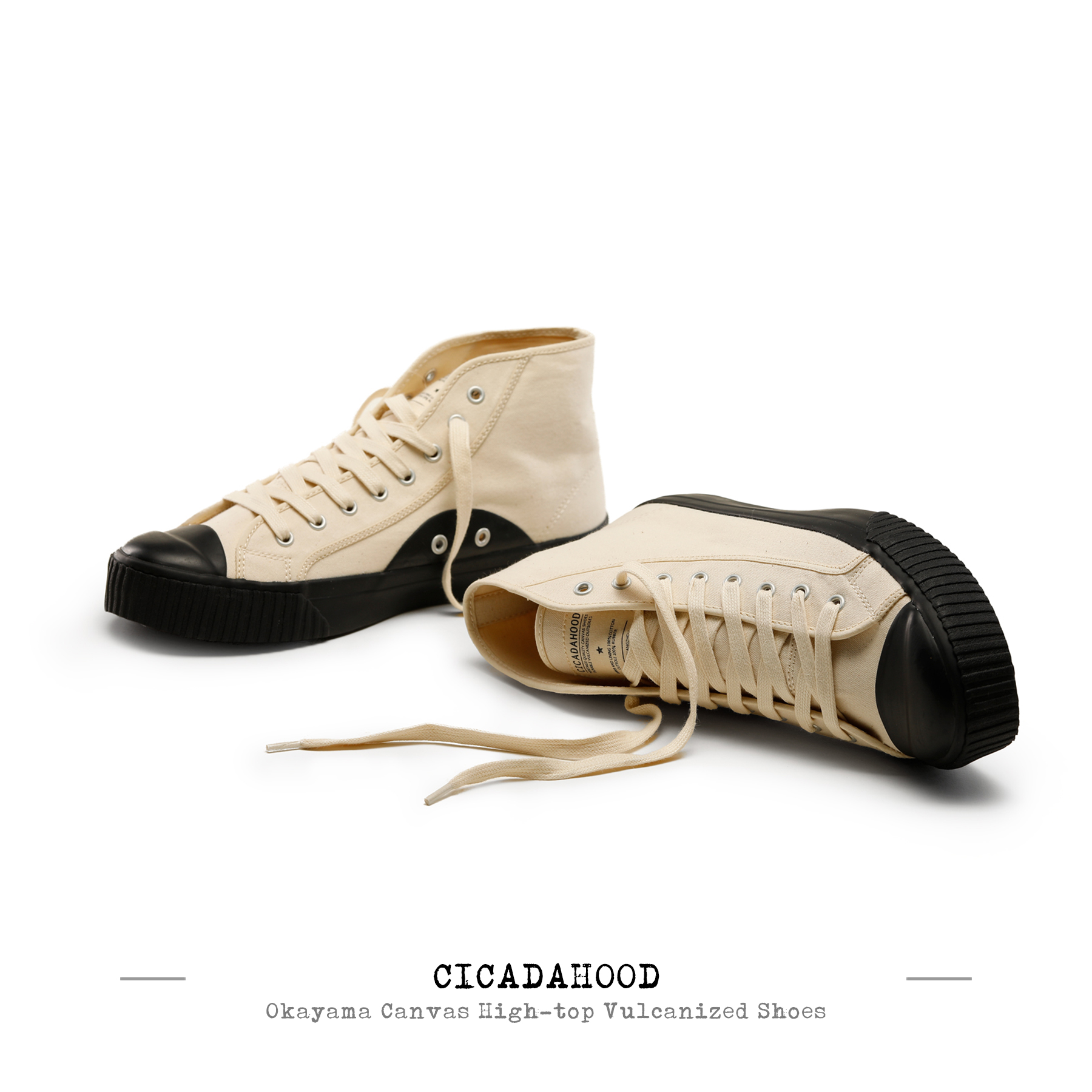 Cicadahood Japan Okayama Canvas High Cylinder Vulcanising Shoes Black & White Money Original Retro Tooling Sails Cloth Shoes