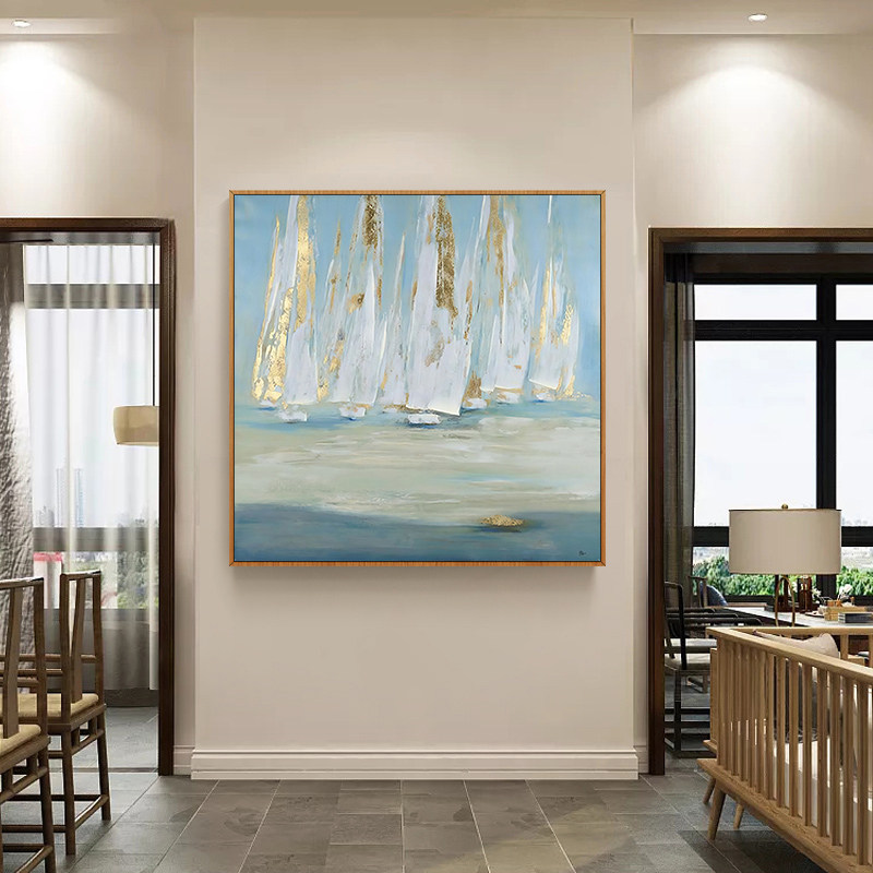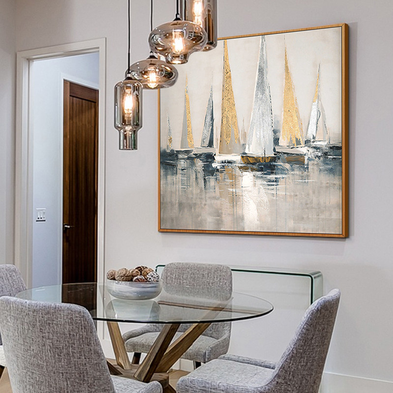 Hand painted oil painting Yangfan Sail Xuan Guan Guan Aisle Decoration Painting Modern Brief About Abstract Gold Leaf Dining Hall Background Wall Hanging Painting