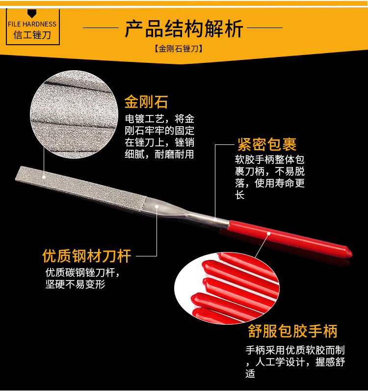 Plastic Handle Diamond Sand Filing Knife High Carbon Steel Shjin File Shaping Filing Knife Shaping Filing Small Metal Mold Grinding Filing Knife