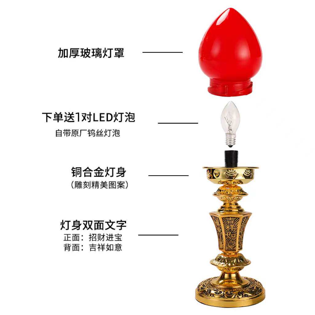 Buddha lamp In front of the Buddha, an electric candle lamp is inserted for the god of wealth special lamp Home god worship god table lamp Guan Gong Chang Ming lamp