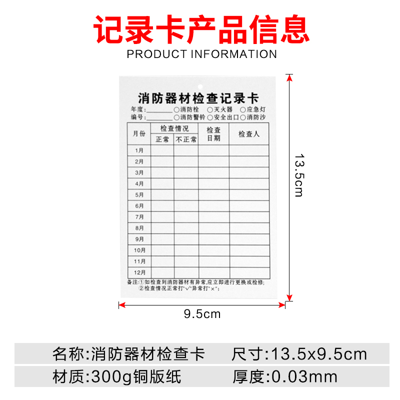 Fire Equipment Fire thrombolt Inspection Card Inspection Card Monthly Inspection Record Sheet Equipment Registration Card