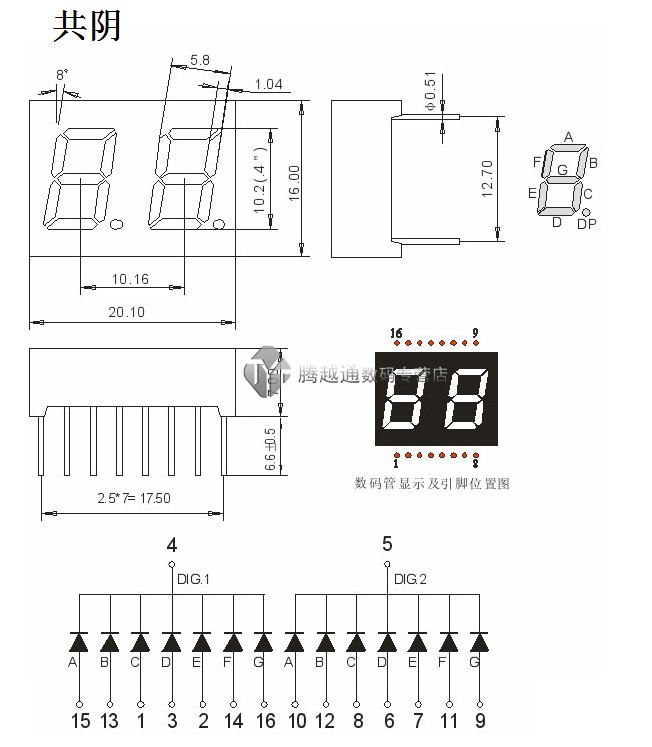 0 4-inch digital tube Digital display tube 2-digit common male 2-digit common female Red highlight