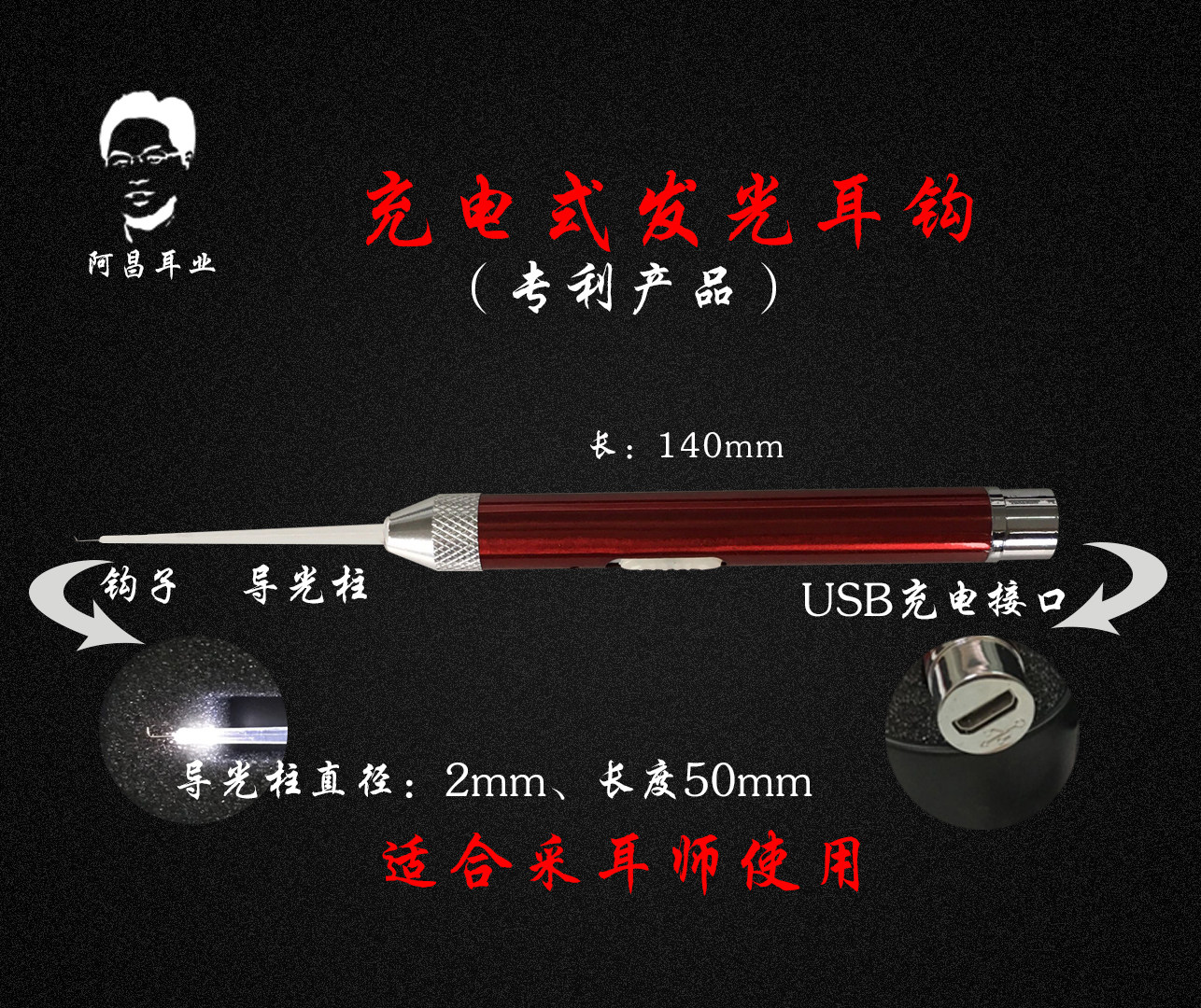 Aluminum alloy battery type luminous earwax hook Aluminum alloy charging type luminous earwax hook