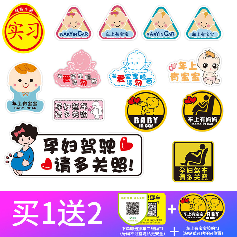 There's baby in the car, magnetic car stickers personality cartoon reflective creative babyincar pregnant baby