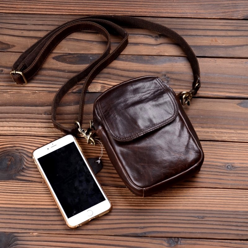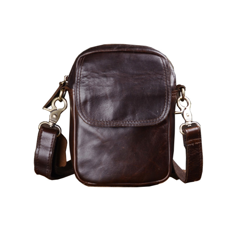 New summer leather shoulder bag men's mini messenger bag retro casual soft leather backpack youth Korean small bag