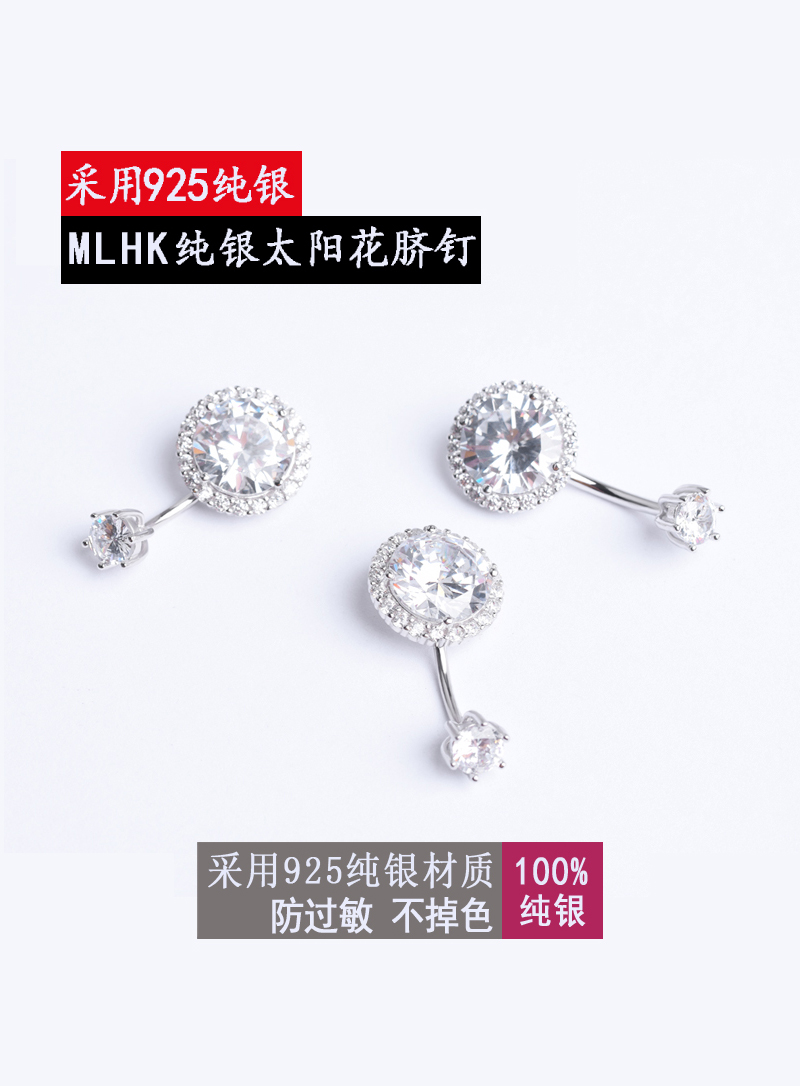 s925 sterling silver hypoallergenic umbilical nail umbilical ring Sterling silver European and American sexy navel nail female short rod fine needle navel buckle
